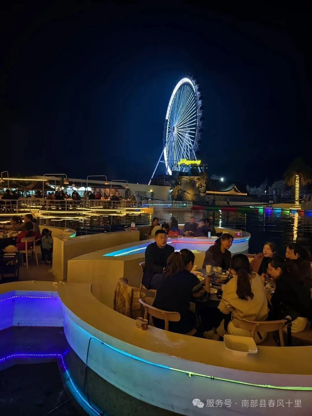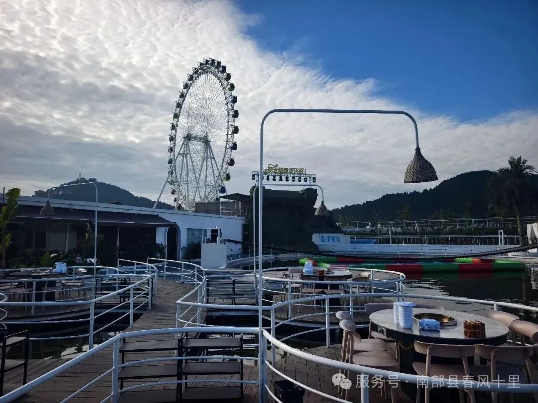 景区配套有摩天轮星空火锅城,有文创超市和茶房,还有可以自己煮饭的湖畔乡厨,吃饭、喝茶、打麻将及游玩,春风十里为你提供一条龙服务!