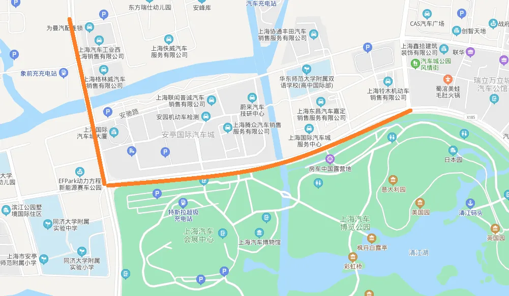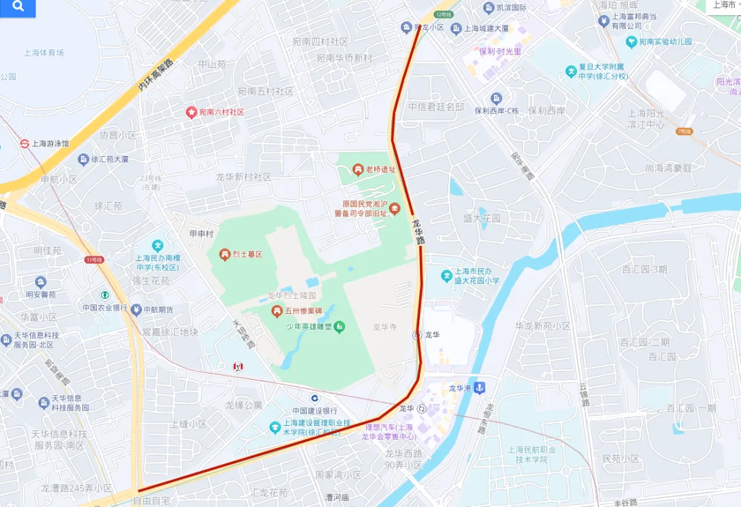 线路①:临港大道—沪城环路—杞青路—银飞路—银飞路海枣路交叉口左转—耀雪内部停车场进口