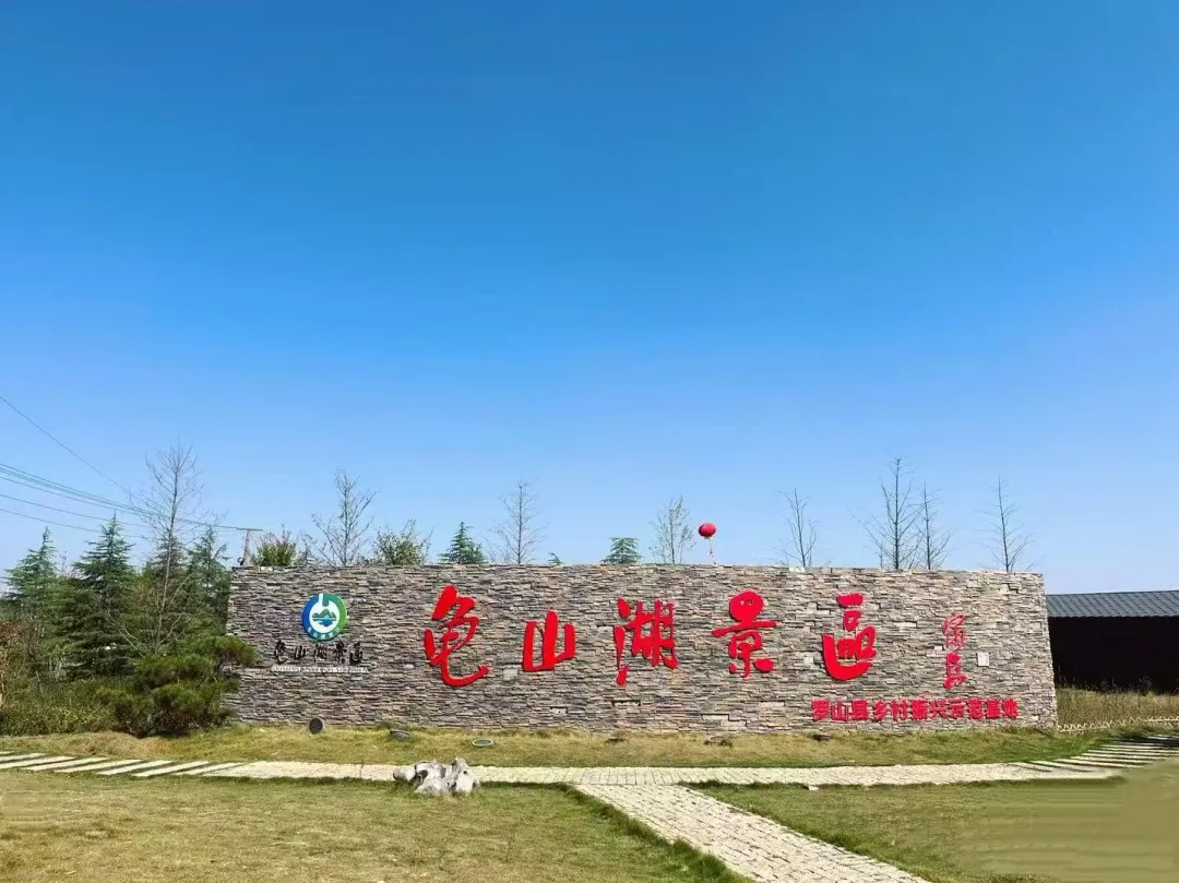 接下来一起去领略龟山湖景区的美景。龟山湖以开阔的湖光山色为底色,是沉浸式感受罗山自然之美的绝佳起点。景区内碧波荡漾、绿植环绕,可沿湖漫步打卡湖景,或在湖边休闲小憩,在舒缓的自然氛围中开启旅程,为后续的非遗体验做好身心铺垫。