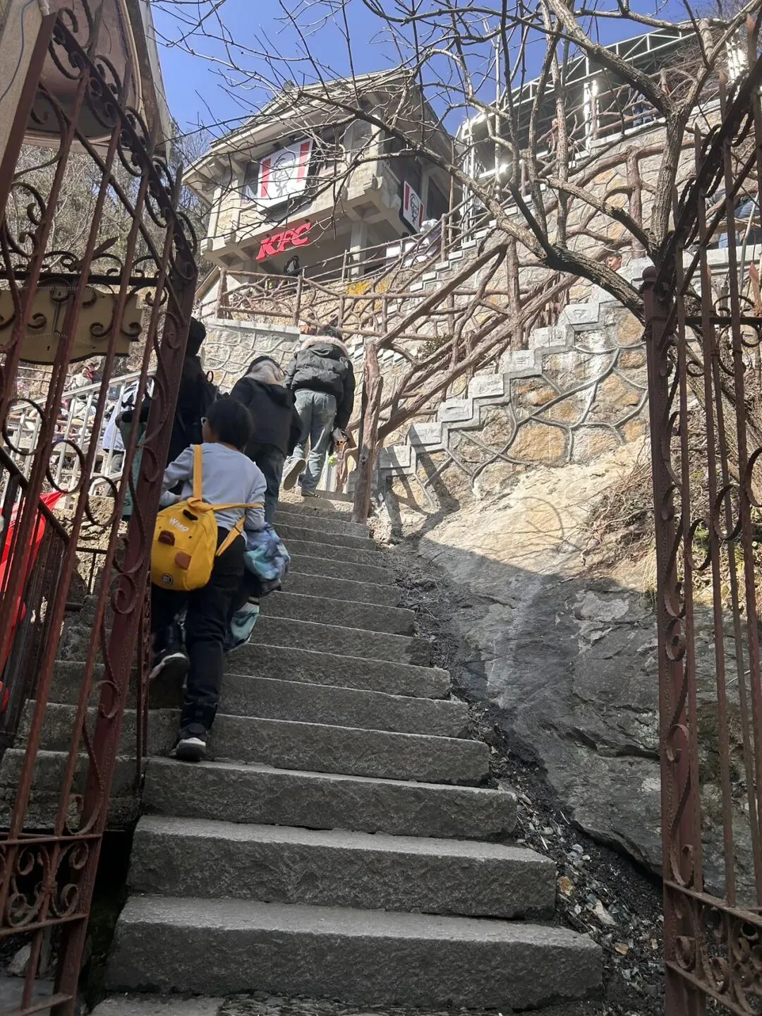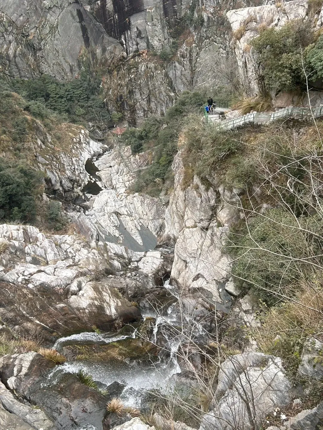 想着返回坐小火车,结果走在前面的人依旧选择走回头路。走到坐观光车的地方,差不多5点,下山上山足足走了五个小时,约1.8万步,只为了看三叠泉瀑布。但因是冬季水流量很小,没有想象中的壮观。