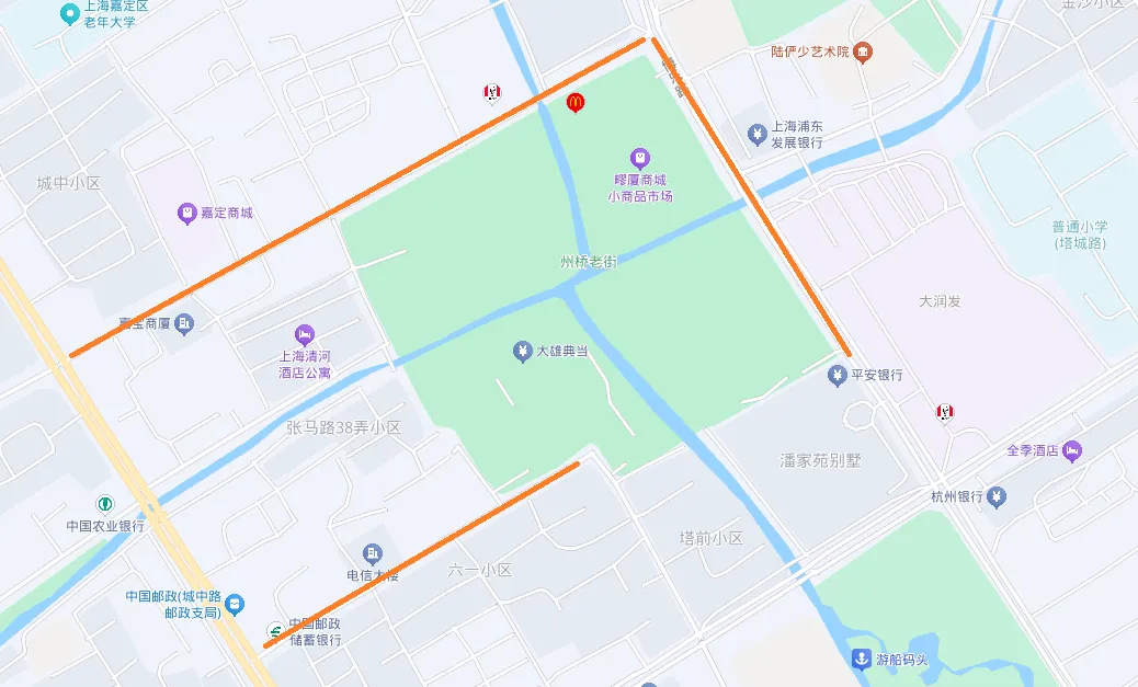 橙色线路:人民路→ 西向东方向通行,连接周边道路