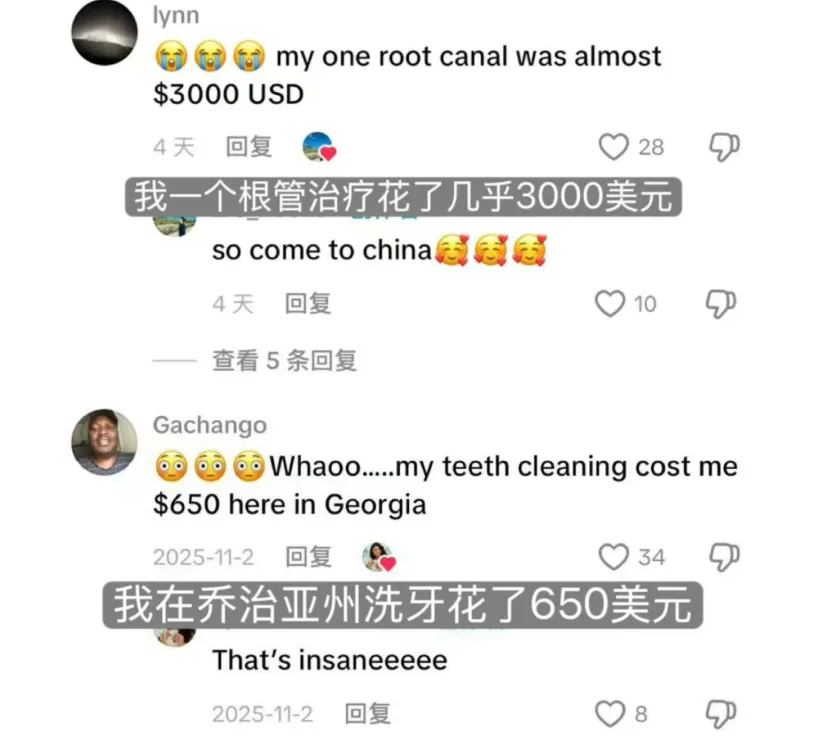 当海外网友们把账单从人民币换成美元后,中国就成了牙科治疗的价格洼地。