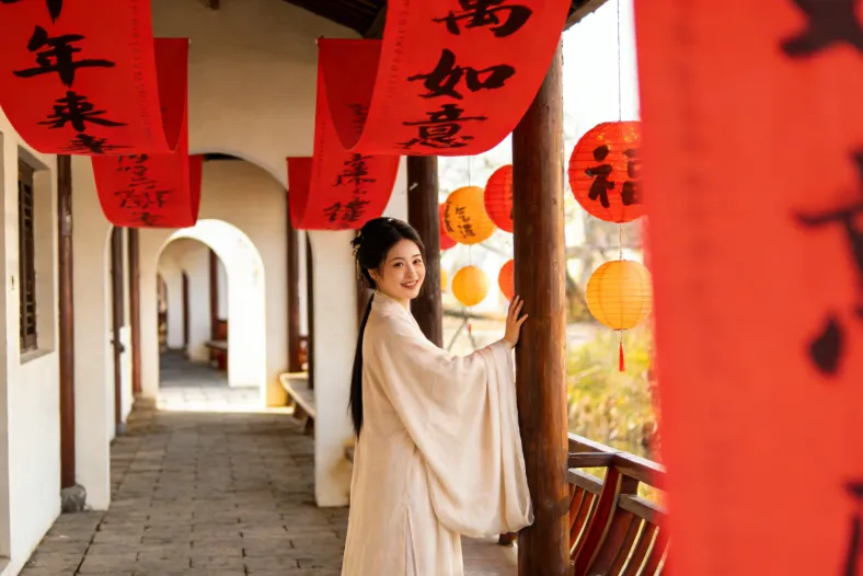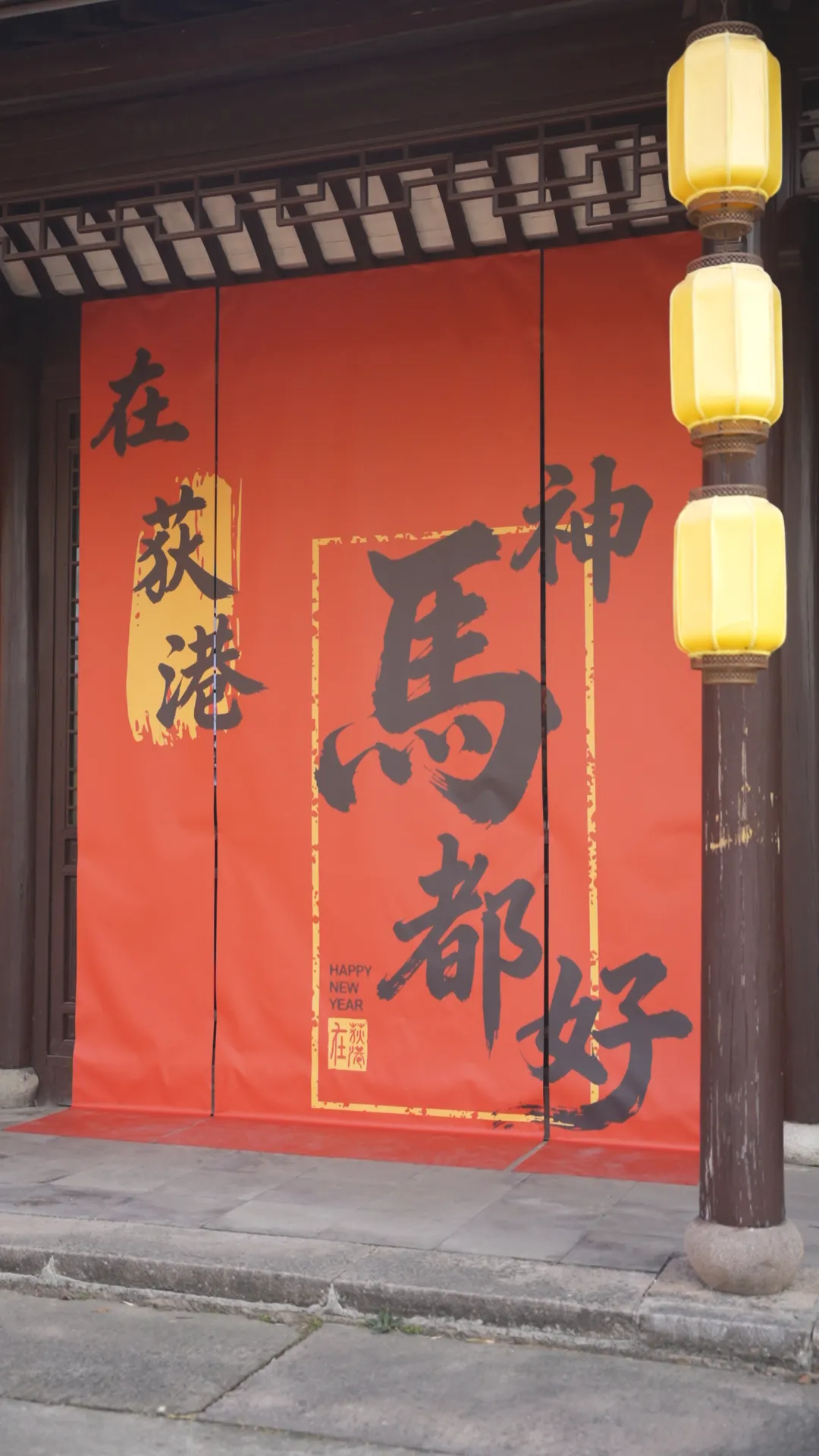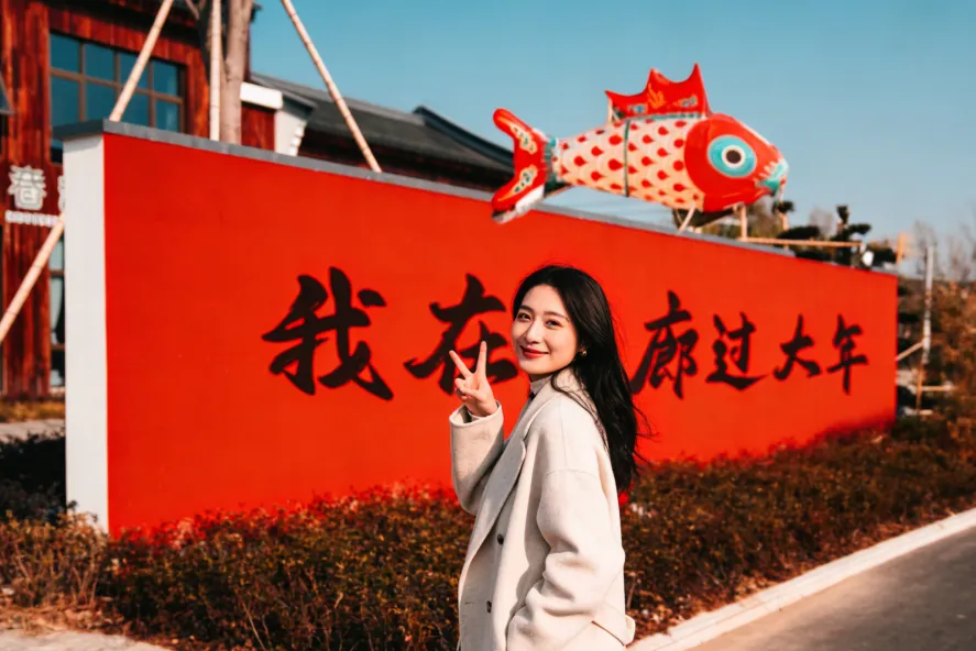 新春的港廊古村落,专属打卡点全覆盖:特色非遗鱼灯、百福墙、连廊帷幔……古风中式布景,随手拍都是新年氛围感。