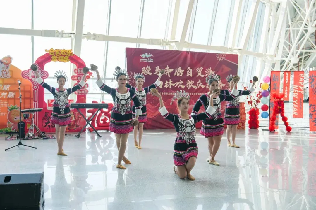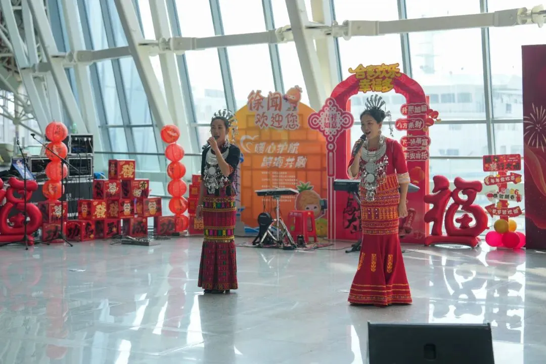 “旅客的体验感,就是港口服务的刻度。”徐闻港总经理余剑强在现场表示,“我们不只是要让车客走得快、走得畅,更要让每一次过海都成为有记忆、有温度的旅程。”正是基于这一理念,徐闻港主动对接海南文旅部门,将黎苗风情演出直接“搬”进候船大厅:椰壳哒哒的清脆舞步、树叶吹奏的悠扬旋律、竹竿舞的欢快互动……十多个特色节目轮番上演,让现场旅客仿佛置身于海南岛的热带雨林与村寨之中,掌声与欢呼声在得月门前久久回荡。