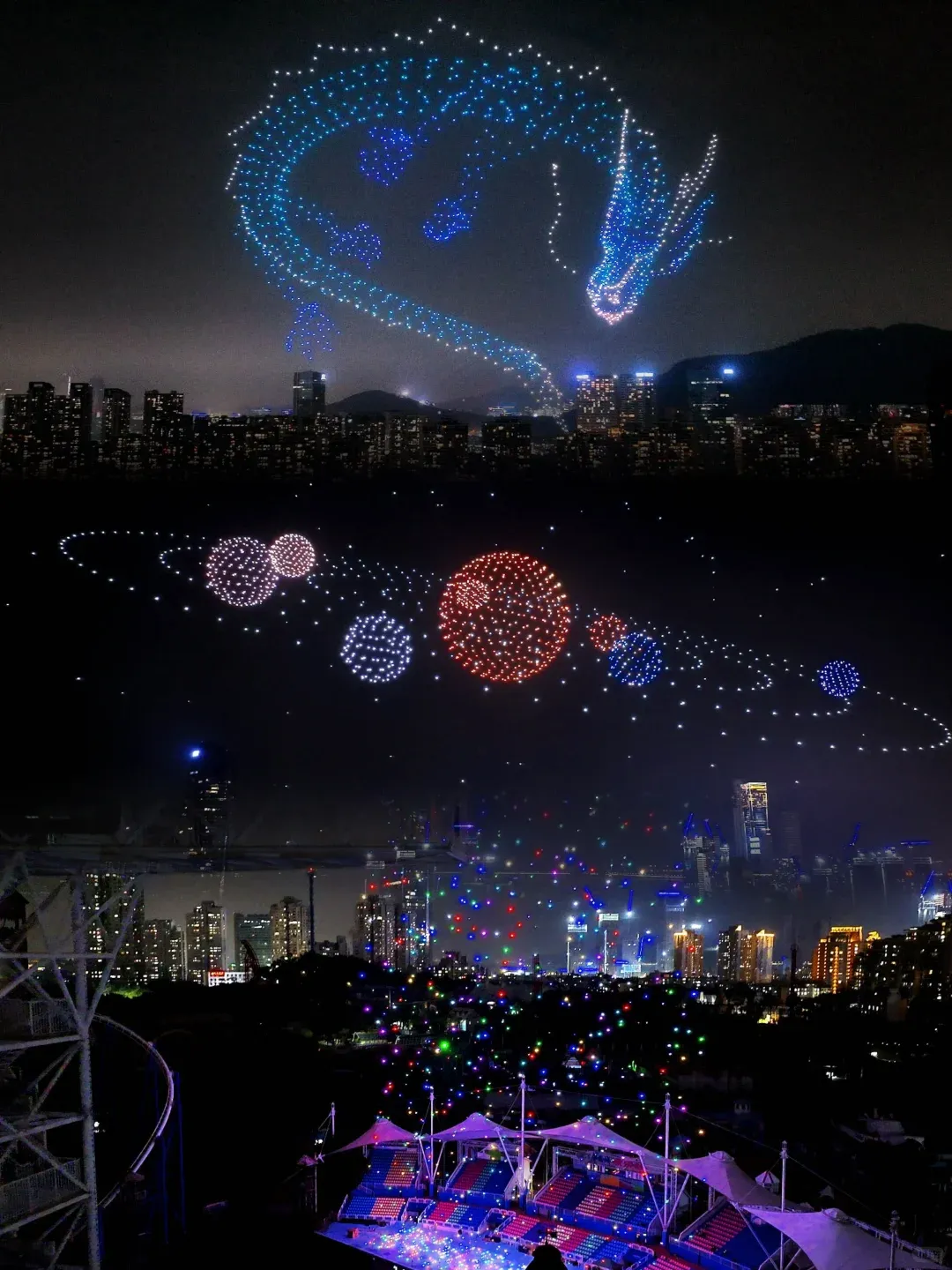 百架无人机划破夜空,新春祝福在天幕璀璨绽放✈️ 视觉暴击拉满!