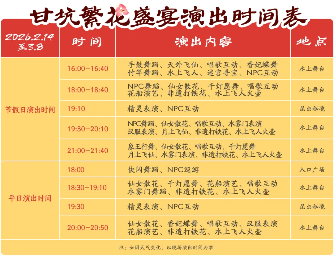 *演出安排可能因天气或客流调整,以现场通知为准。