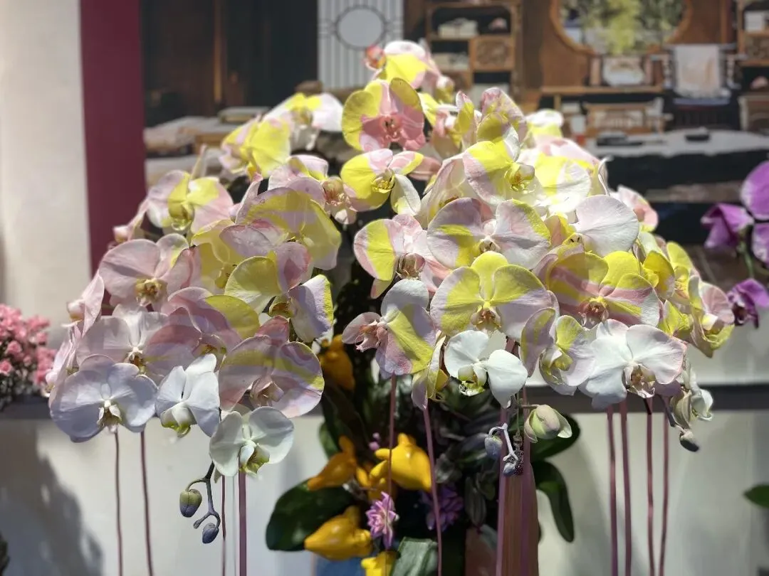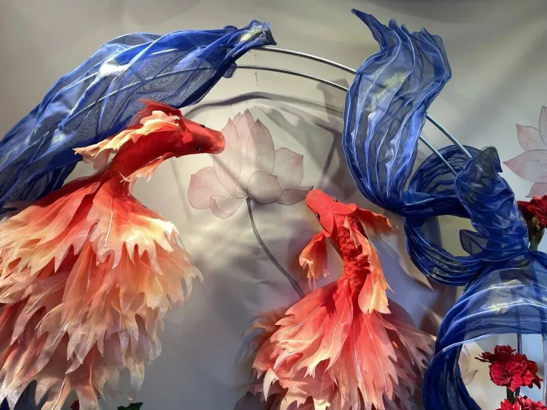 其实呢,还有一个重头戏,那就是“依光堂”的展览与“阅礼堂”的繁花,尤其是“阅礼堂”,以牡丹点缀,再现吴越风华。室内展区汇集空气凤梨、杜鹃、热带兰等冬季奇花异草,更有“大鱼海棠”纱艺金鱼游弋花月之间,如梦似幻,为真正的赏花区域。仔细观看,近70种、上万盆鲜花,包括高大的造型茶花、新引进的垂直梅、富贵的牡丹,以及当季的红梅、蜡梅、郁金香和水仙等存在,都是其中亮点!