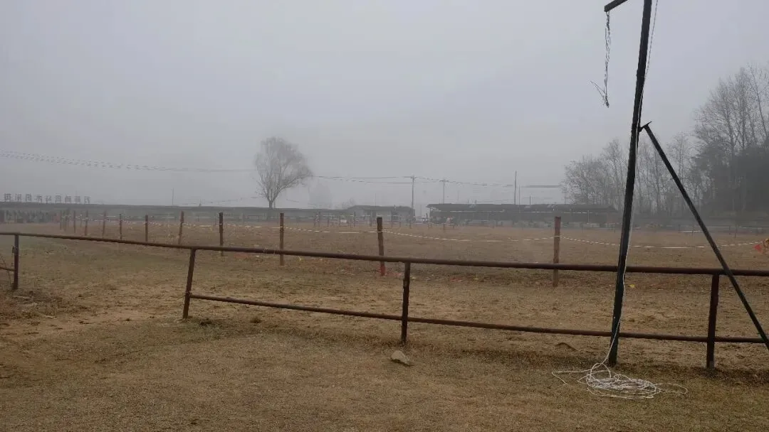 从市区到景点下车后,四周都是农田,今天是小年,空气里有烟花爆竹的味道,能见度很低,冷冷清清见不到一个人,我有点想“打道回府”了。