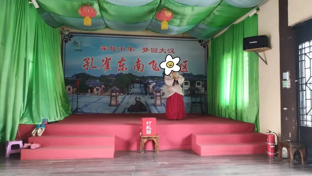 好在走了一段一块牌子上写着黄梅戏,走进去只有一位年纪较大的演员,见到我很是热情,问我有没有想听的片段。问清楚是看心情给打彩钱后,大姐给我这位唯一的观众,激情满满地唱了“女驸马”、“天仙配”等三个选段。