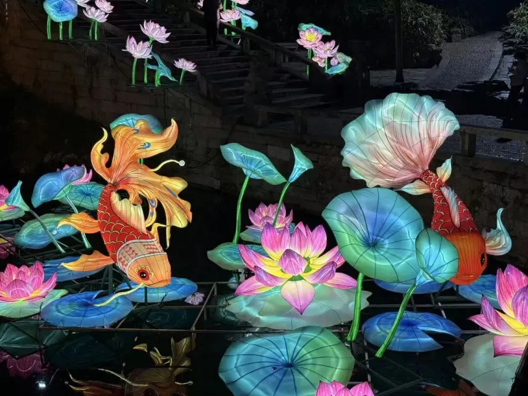 “鱼龙引径”、“鹤舞林溪”、“花神灯宴”、“伯虎问茶”、“鲤跃福门”、“福星聚财”、“万马奔腾”等