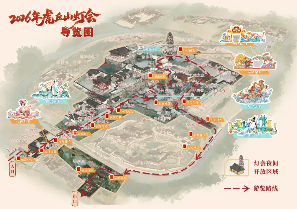 💥开放时间:虎丘山灯会期间,17:00北门停止入园,请从南门入园,21:00南门停止入园,21:30闭园,白天和晚上采用一票制(园林卡可用)