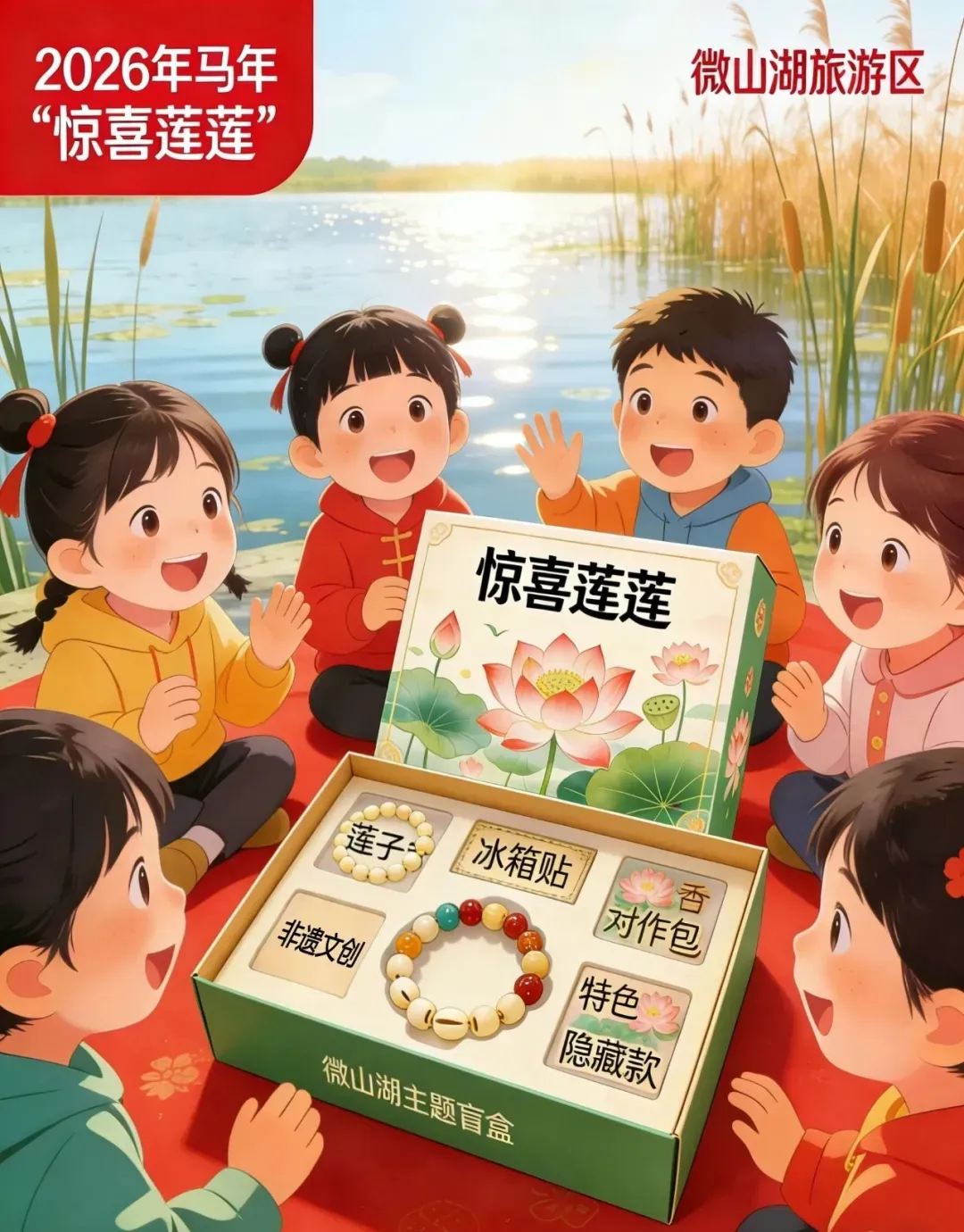 “惊喜莲莲”微山湖主题盲盒限时开启!每个盲盒都藏有湖区特色好礼:或许是精美莲子手串、冰箱贴,也可能是非遗手作包或特色文创。更有一份神秘隐藏款等待有缘人。轻启盲盒,收获一份来自微山湖的未知惊喜,让旅程的快乐延续。