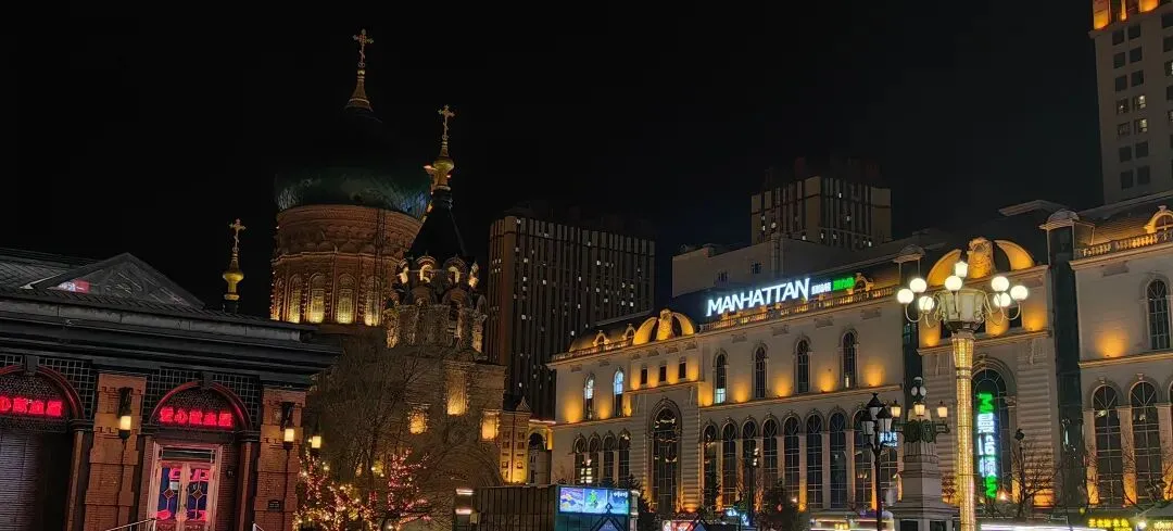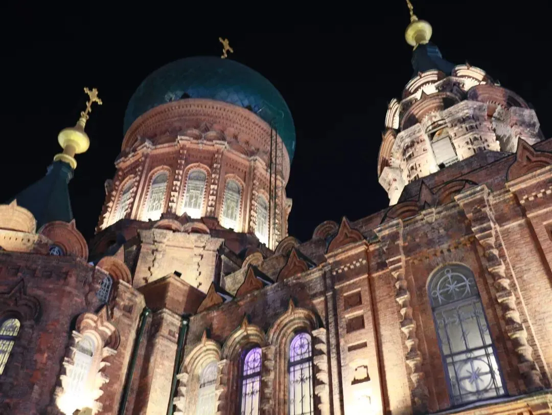 🏂 松花江冰雪嘉年华(2025-2026第八届) 沿着松花江方向穿过中央大街,便看到了江面超大的冰雪场,免费入园,进去后单独购买项目,我们玩了雪地马车,冰上四驱车拖转圈圈,主打速度刺激💓 ④圣索菲亚大教堂 拜占庭风格的洋葱头穹顶在夜色中格外迷人,是哈尔滨的标志性建筑。晚上还有灯光秀表演,很唯美震撼。