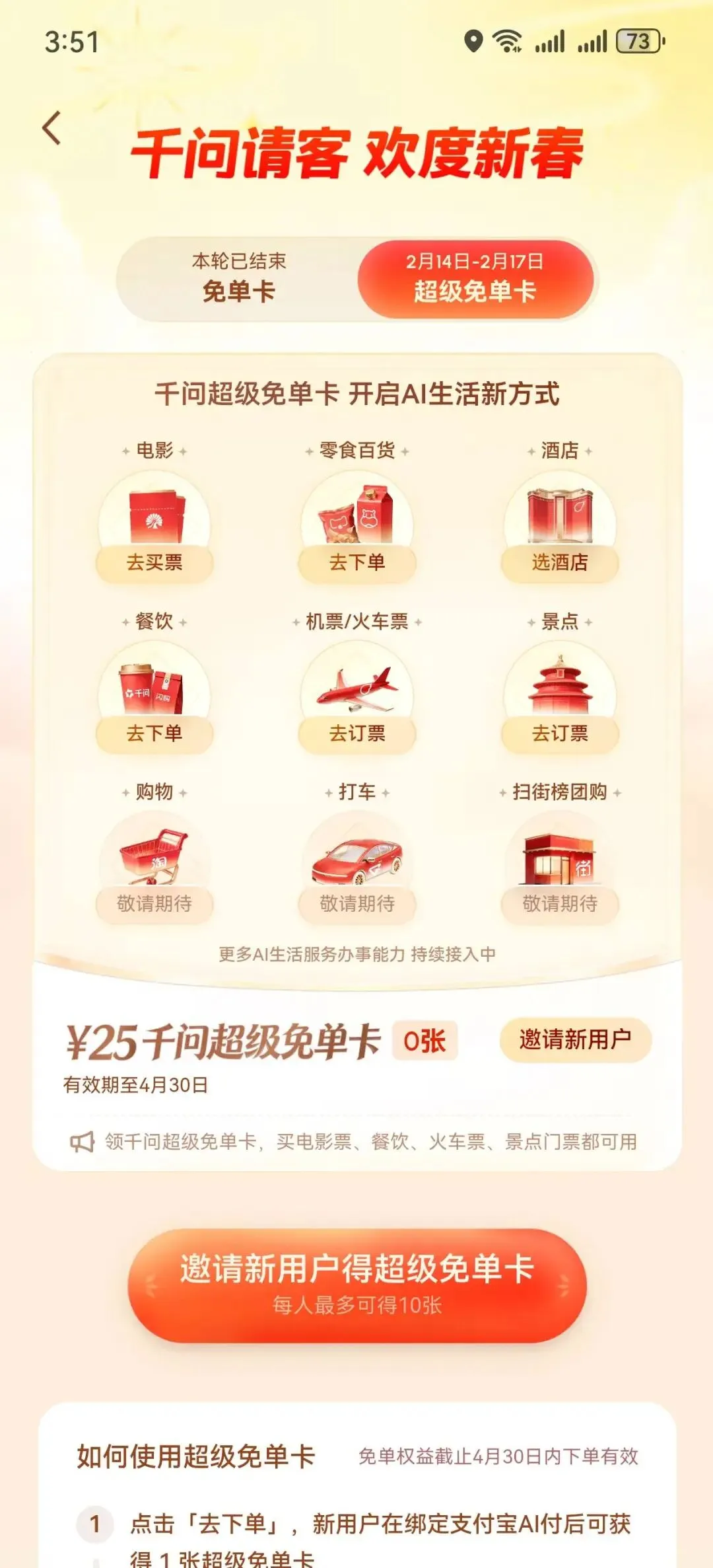 而且新用户白拿25元超级免单卡,拉朋友各得一张,上限10张。