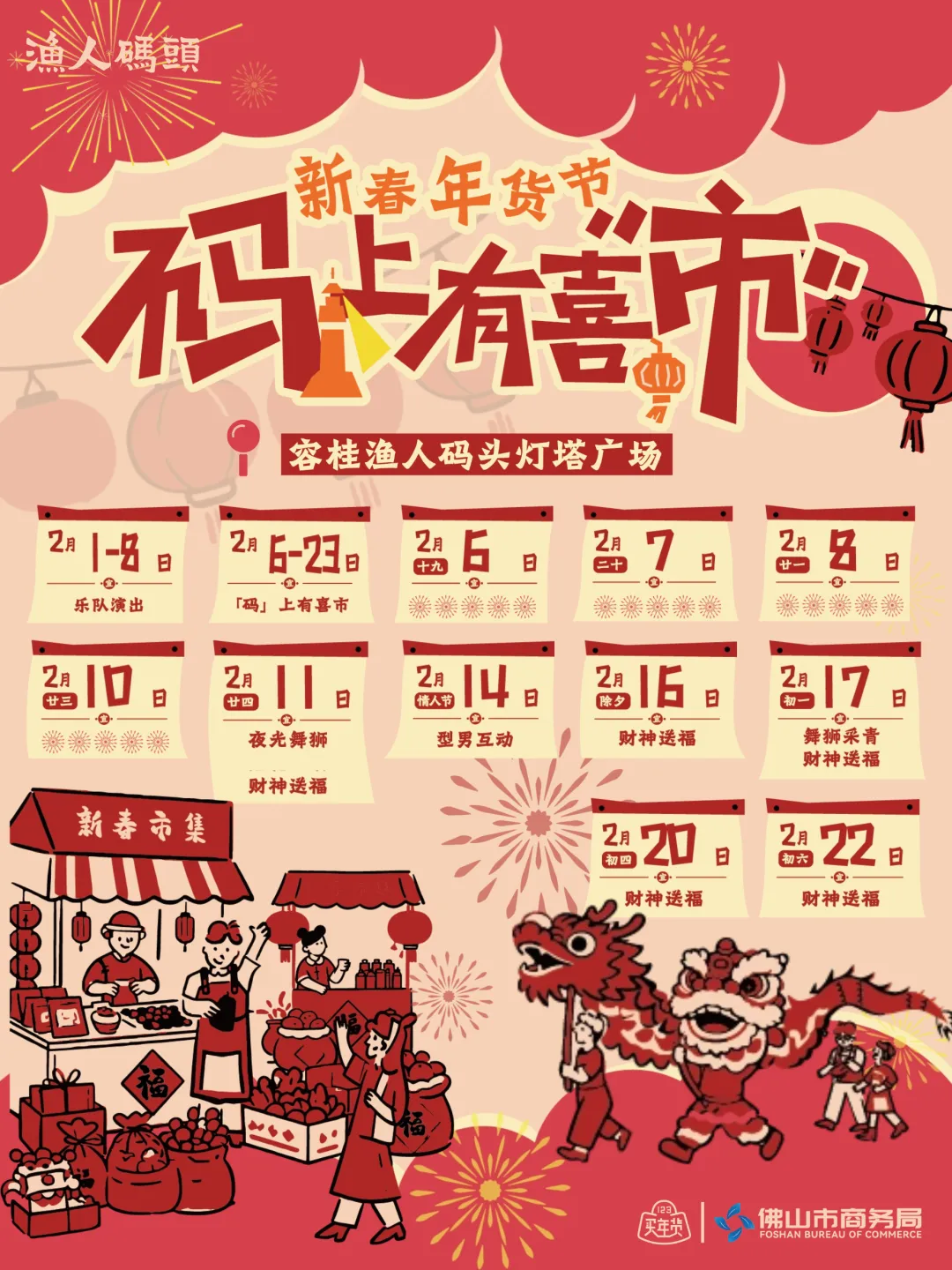 观看正月初一(2月17日)盛大的龙狮巡游与飘色表演,参与非遗体验,融入热闹的民俗盛宴。