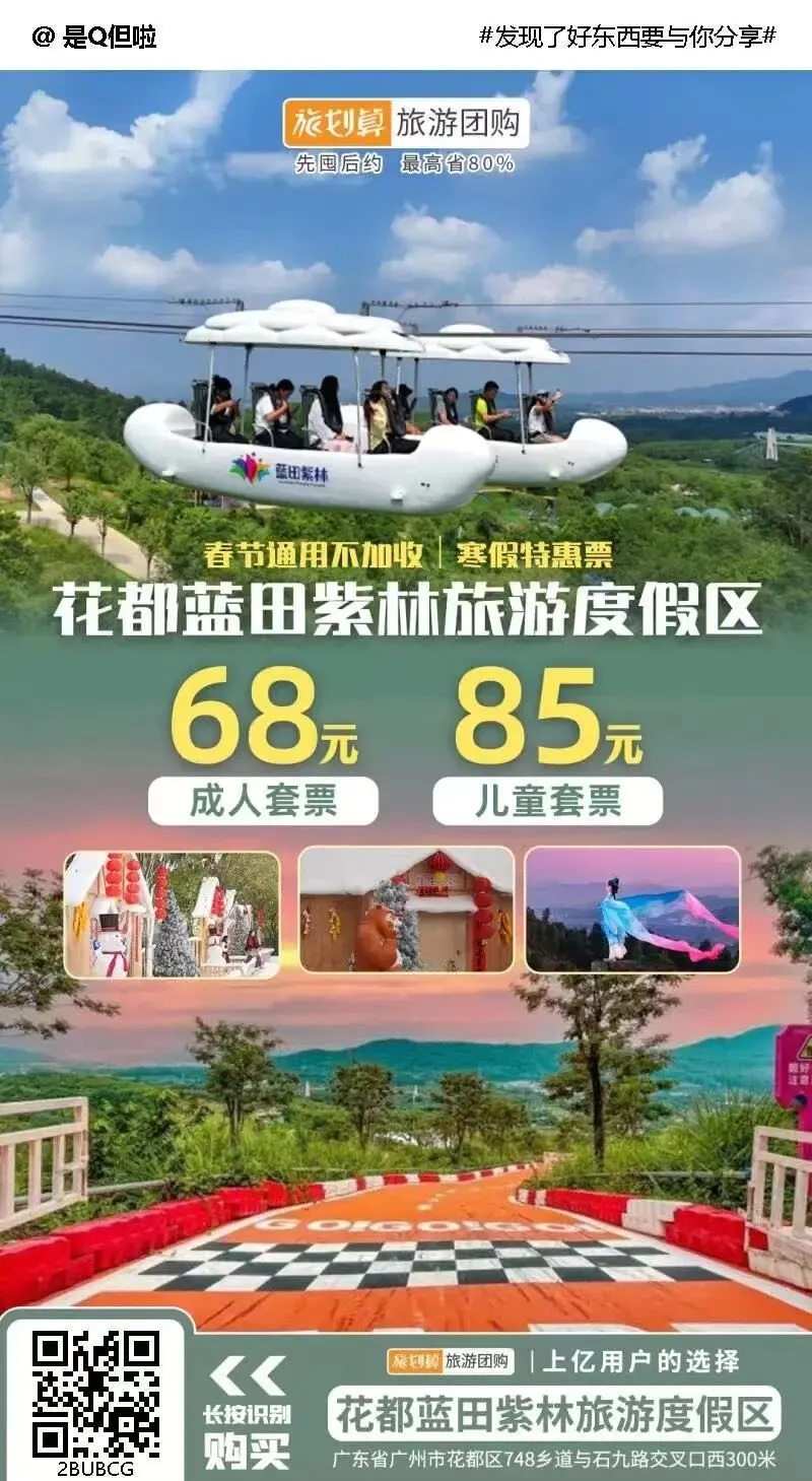 【春节通用不加收|花都蓝田紫林旅游度假区】68元成人票 / 85元儿童票,含入园+网红小火车+24项游乐+童话雪乡+花海,一站式打卡多元趣味