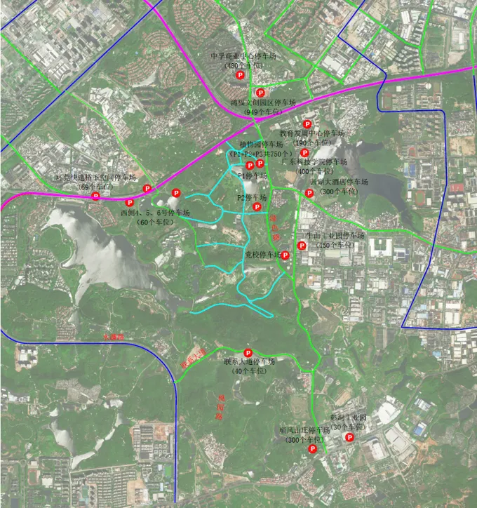 东莞植物园周边11个停车场实施共享停车,并已启用智能停车诱导系统,市民可根据实时停车状况选择停车场: