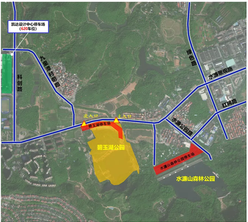 各共享停车场距离景区较近,暂未开通接驳专线,请各位市民步行前往。