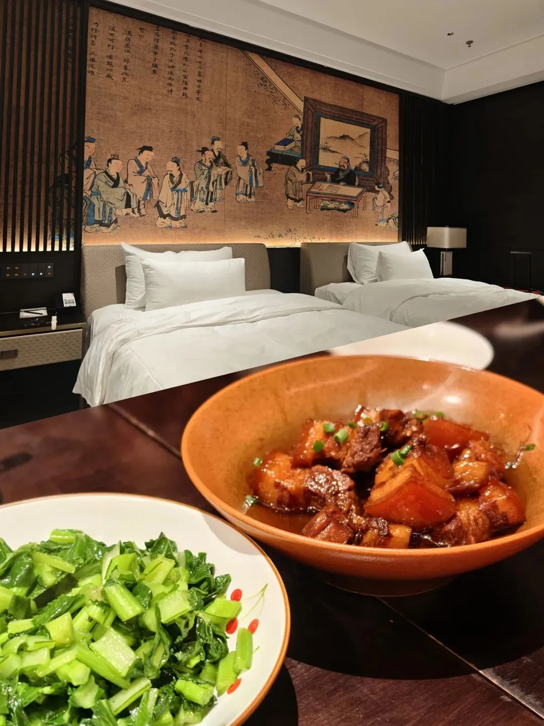 腊月廿五(周四)出发,路上拥堵情况比前面5天好了很多,一路比较顺利,车程近400km 5.5小时(含诸暨服务区午餐)。酒店就在府山公园/中国儒学馆/孔氏家庙/衢州博物馆边上,非常方便;酒店处处渗透着南孔儒学文化气息,除了房间装饰(孔子授业彩绘),还有热情服务。