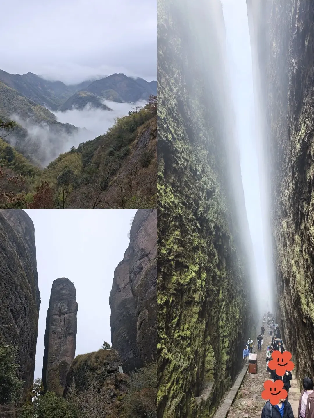 酒店到江郎山车程65分钟。遇到小雨大雾天气,遗憾没能从远处观赏到江郎山标志性的三片石美景。不过身临其境,云雾缭绕的一线天犹如仙境,在一线天尽头的平台,一阵风吹过,最终让我们短暂见识到三片石的雄伟神奇。最有挑战的运动量是登郎峰,我们没有上去,从一线天平台返程,不走回头路,总体运动量适中。