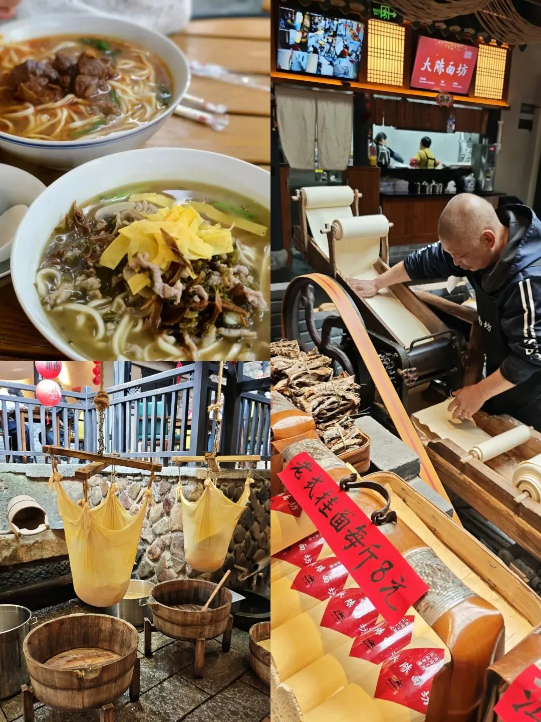 廿八都的商业化相对不高,游玩舒适。我们抵达后直奔大陈面坊,大陈面味道非常不错,配料丰富,很有劲道。离开时品尝了豆花、豆浆,现场可以看到豆制品的制作过程。