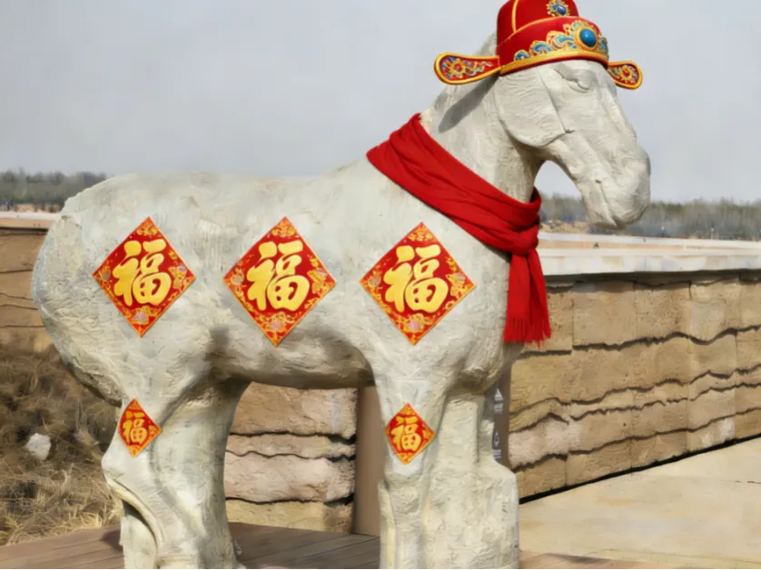 👉马年专属打卡:“马跃统万”主题打卡墙搭配趣味拍照道具,还有大夏石马雕塑打卡点,随手一拍就是古风氛围感大片,定格新春美好瞬间。要知道,大夏石马作为大夏王朝唯一有文字纪年的遗物,见证了赫连勃勃创立大夏国的辉煌过往,与马年新春适配度拉满~