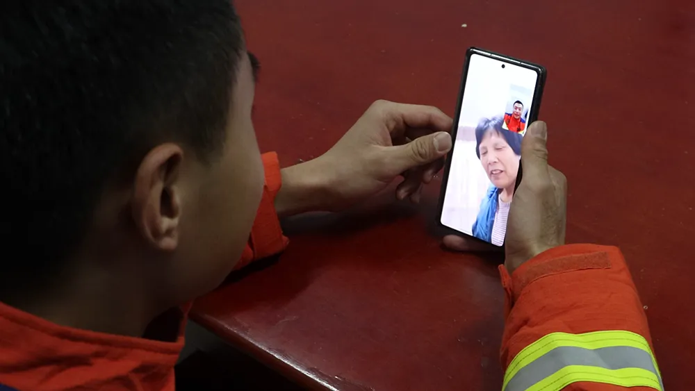 “妈,今年春节我就不回家过年了,您别担心,等忙完这阵我就回去看您。”休息间隙,许瑞博通过视频连线与家人通话。