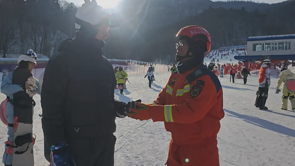 在寒冷的冬日里,“救援橙”用自己的行动传递着温暖与关爱,默默守护着每一位游客的安全。“作为一名消防员,这个春节能通过自己的坚守,让游客们感受到家的温暖,我觉得特别自豪。”三班副班长许瑞博这样说到。
