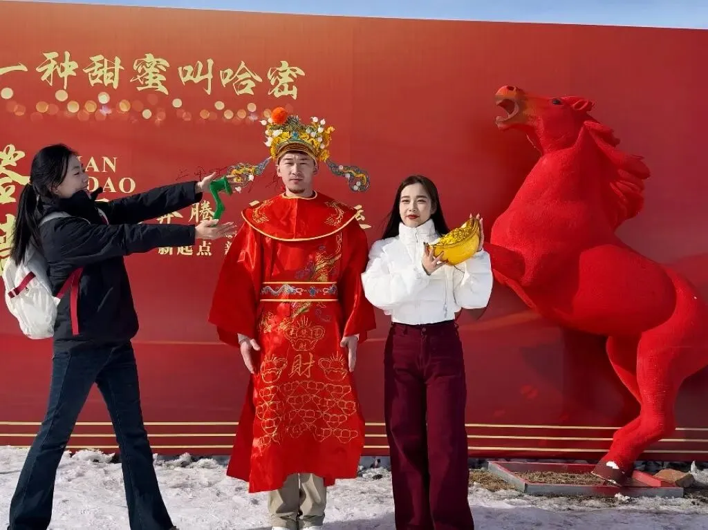 与「财神」合影 → 获【有一种甜蜜叫哈密】章(解锁哈密专属甜蜜与福气) 与「蛋仔人偶」合影 → 获【游新疆从大海道开始】【艾斯开霞尔古堡】双章(打卡古丝路遗址,解锁雅丹风情) 马年打卡点,完成搞怪动作合影 → 获【诺尔部落】章(探秘雅丹秘境,感受古丝路休憩之地的韵味) 服务大厅打卡装置拍摄合影 → 获【翼龙腾渊】章(致敬翼龙化石秘境,愿你马年大展宏图) 体验写对联、福字并拍照 → 获【瀚海神龟】章(打卡标志性雅丹景观,愿你马年福寿绵长)