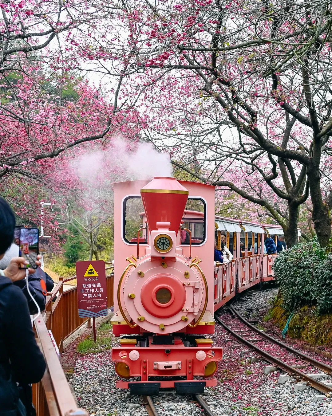 樱花谷正月初一正式开园!开往春天的樱花小火车即将出发!驾驶员会贴心停下,让你慢慢拍、尽情发,把整个山谷的春天装进手机里。
