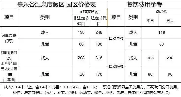 含:早餐券*3张+3大2小门票(凤凰温泉+无动力乐园)