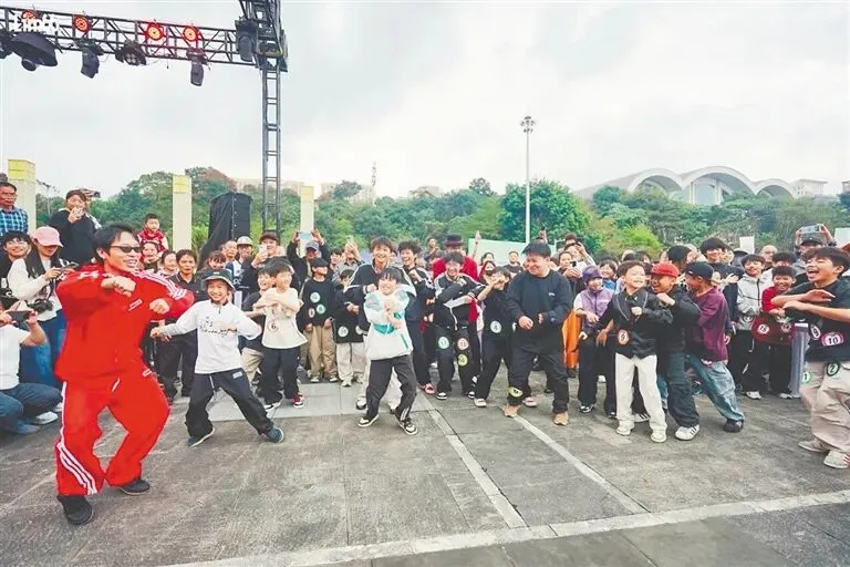 2026年“琼中杯”热带雨林体育竞技操舞大奖赛,舞者与观众互动。琼中融媒体中心供图