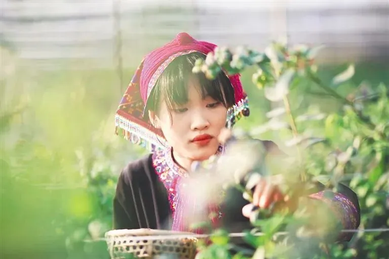 游客在琼中什寒村采摘蓝莓。琼中融媒体中心供图