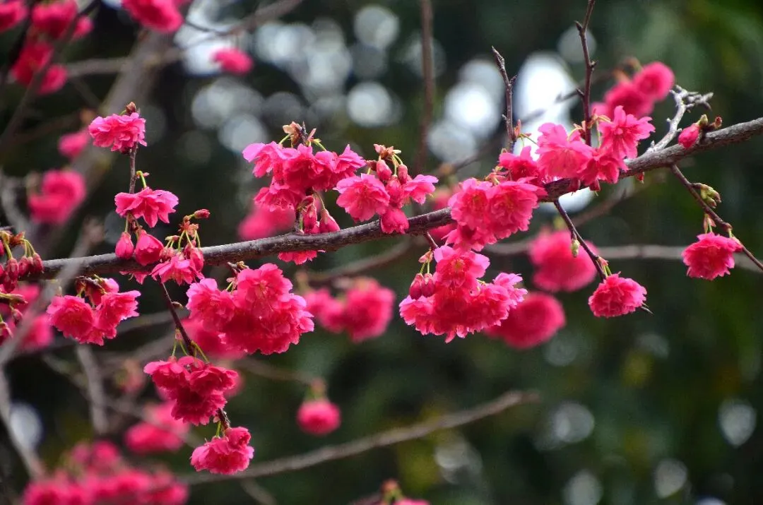 红艳如火、粉润如玉的花朵缀满枝头,