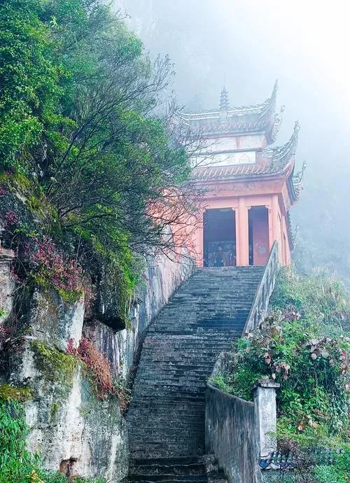 这个道观的位置很有意思,建在山腰上,不高不低,刚好卡在云雾最容易聚集的那个海拔,所以你去的时候经常能看到云从山下飘上来,把整个观包住,然后又散开,这个过程可能就十几分钟,但足够让你理解为什么古人喜欢在山里修道。