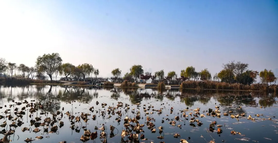 冬天的荷塘特别安静,水面会结薄冰,荷梗子在冰面上留下影子,阳光透过来的时候,整个塘面就是黑白灰的调子,像水墨画一样。塘边有小路可以走,能绕着荷塘走一圈,看不同角度的残荷,每个角度感觉都不一样。这地方适合喜欢拍照的人来,冬天的残荷塘比夏天的荷花塘要耐看,因为那种凋零的状态反而更有张力。