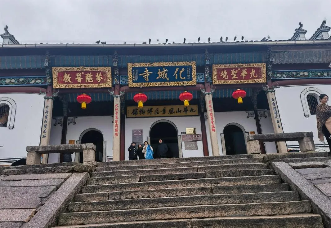 化城寺是九华山开山第一寺,地藏菩萨当年就是在这里修行的,但这个寺庙给我最大的感受不是它的历史地位,是它的位置和气场。化城寺在九华街的中心,周围全是民居、商铺、香客,但你一走进寺庙的院子,那种喧嚣就被隔绝了,不是物理上的安静,是心理上的安静,你会突然意识到,原来闹市和清修之间可以只隔一道门。
