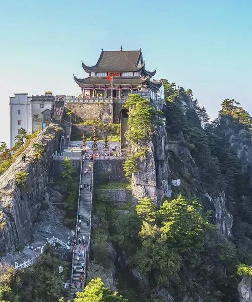 天台峰是九华山的最高峰,海拔1306米,很多人把它当成九华山的终极打卡点,但天台峰真正的意义不是高度,是你爬上去的那个过程。从山下到天台峰有两条路,一条是传统的登山步道,大概要爬两三个小时,一条是坐索道,但坐索道的人往往错过了天台峰最核心的东西,因为那两三个小时的登山过程,就是一次身体和心理的双重修行。