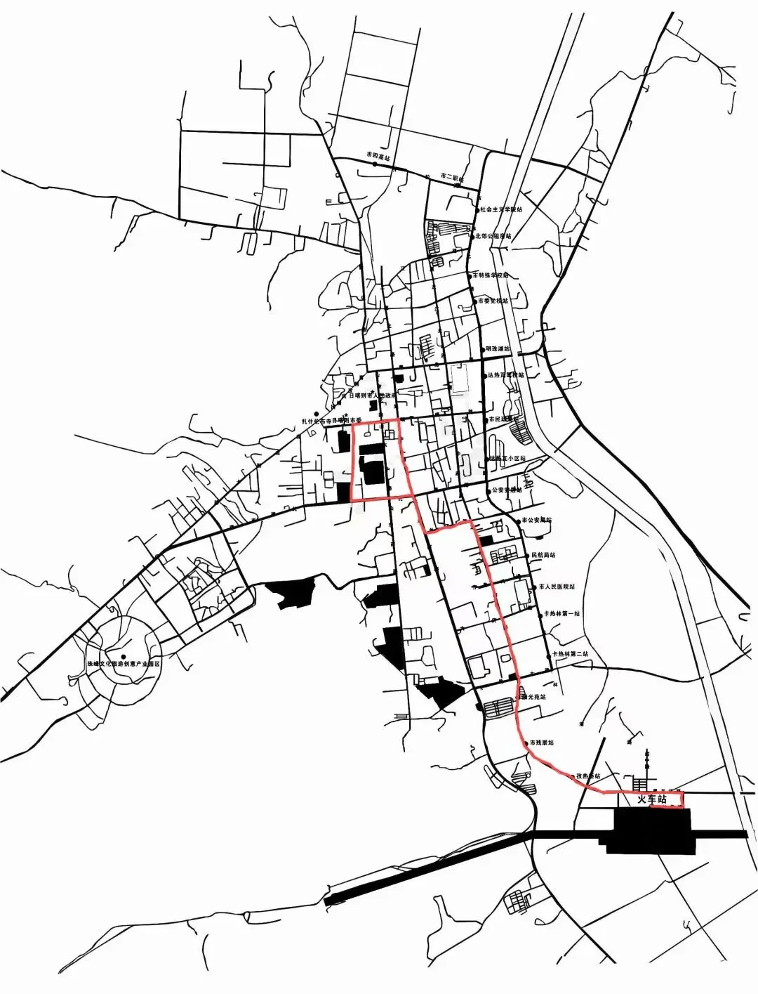 ●绕行后途经站点:火车站→斯玛村站→孜热桥站→市公法中心站→阳光苑站→区人民医院站→市委宣传部站→区公安局站→四号公园站→农牧安居站→市文旅局站→教育安居站→扎西吉彩社区站→市交管支队站→藏隆广场站→市融媒体中心站→体育路北站→体育场站→草原监管局站→新华书店站→扎西吉彩社区站→教育安居站→市文旅局站→农牧安居站→四号公园站→区公安局站→市委宣传部站→区人民医院站→阳光苑站→市公法中心站→孜热桥站→火车站。