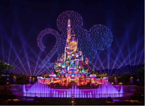 迪士尼乐园内,新春巡游热闹开启,卡通人物换上喜庆装扮,与游客互动送福,还有限定新春福袋;夜晚的灯光秀融入新春元素,在城堡上空绽放出吉祥图案,搭配机动游戏的欢乐体验,让大人小孩都能玩得尽兴。