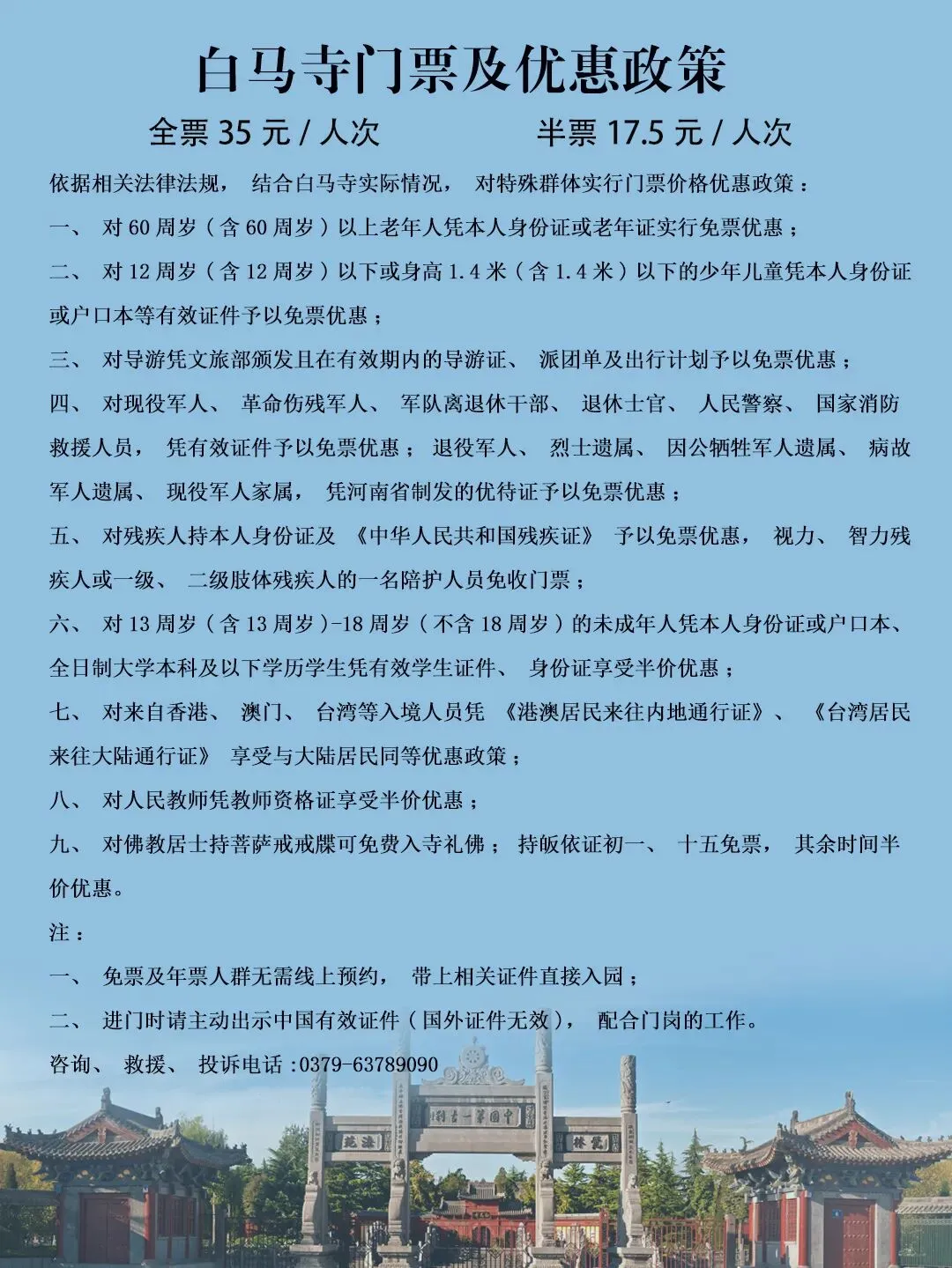 为提高广大游客在洛阳白马寺景区的旅游体验,进一步保障游客安全,结合景区实际,白马寺将于2026年2月15日至2026年2月23日临时关闭线下售票窗口,游客仅可通过线上渠道微信公众号“洛阳白马寺”预约门票系统提前购票进入白马寺游览。
