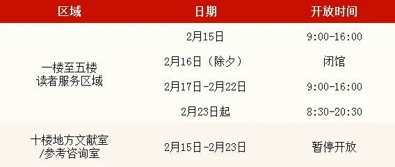 2月15日-2月20日(腊月廿八-正月初四)放假闭馆,2月21日(正月初五)恢复开放;
