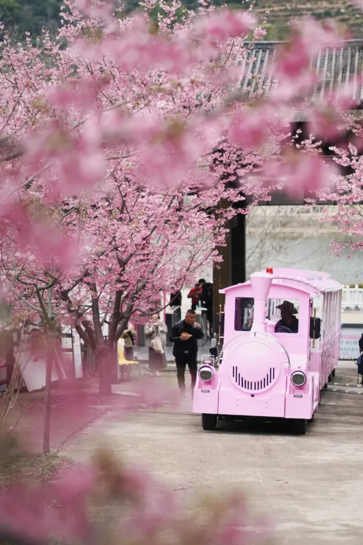 温州樱花园于2月13日(腊月二十六)正式开园,早樱、中樱、晚樱将会相继开放,带来全然不同的粉色浪漫。今年园区设置了樱花檐、卧樱池、樱空织梦等打卡点,植入旋转木马、小火车、树下小火锅、秋千等趣味体验,也可以在开阔草坪上,被盛放的樱花林360度环绕,铺上野餐垫,准备精致餐点,以繁花为背景,轻松拍出松弛感满满的春日休闲大片,是享受野餐、沐浴阳光的完美地点。