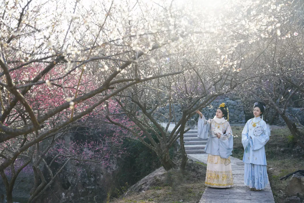 步入永嘉书院,但见龙梅苍劲、白梅清逸、粉梅婉约、红梅灼灼,更有腊梅缀金其间,疏影斜横映着楠溪江的灵秀,风过处暗香浮动,每一缕都藏着江南早春的温柔。现场还设置了汉服游园、人偶NPC互动、梅园寻宝等特色活动,春节去永嘉书院赏景观梅是个不错的选择。