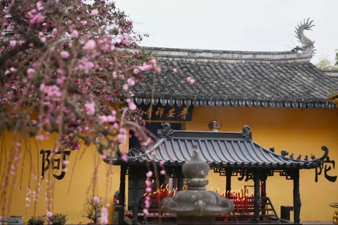 立春已过,楠溪江畔的风捎来小惊喜。,永嘉普安禅寺的龙梅盛开啦!垂坠如瀑的龙梅,清丽茭白的玉蝶梅,清雅脱俗的腊梅,艳丽热烈的红梅,在古刹和寺前广场前竞相绽放,形成漫天云霞,铺展成一场限定的视觉盛宴,引得游人纷纷而来,赴一场禅与花的约会。