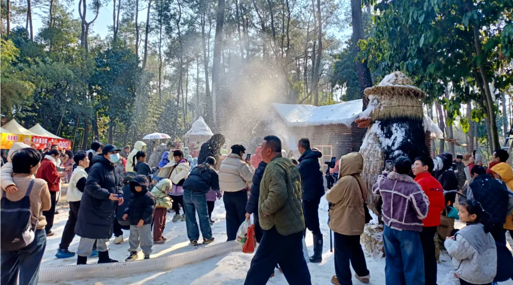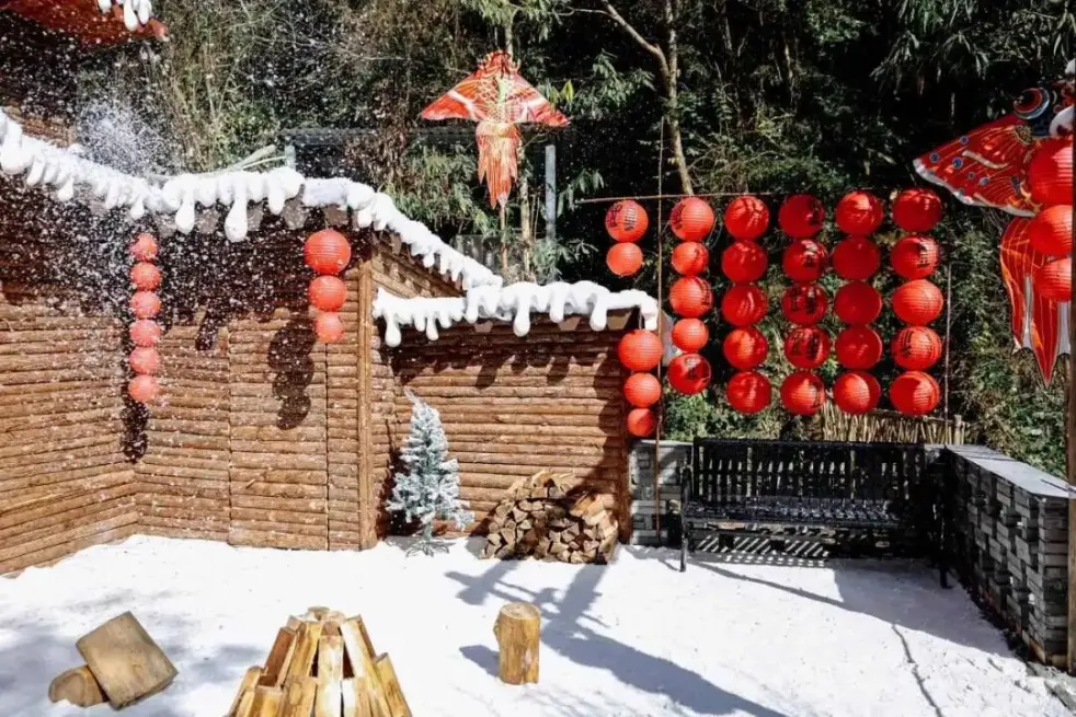 四海山森林公园通过人工造雪形成了一个梦幻的冰雪世界。堆雪人、打雪仗、滑雪,南方小土豆在家门口就能享受雪地的快乐。当前,位于温州永嘉四海山“FOR CAFE营地”内的“林海雪原”项目正式迎客。这个在千米海拔山巅上的人造雪景,以“雪圈滑行”为核心亮点,融合动物互动、咖啡美食、山居生活,为市民游客提供了一个冰雪度假新选择。