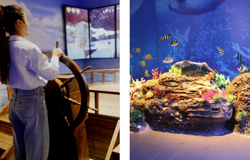 • 南麂海洋馆有3000多种海洋生物标本,就像个“贝藻王国”。还能通过巨幕和VR互动,好玩又能学到好多海洋知识。