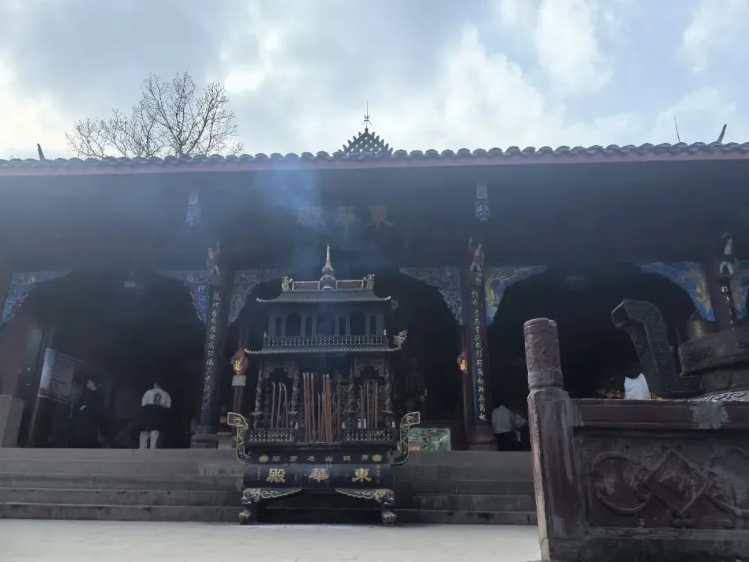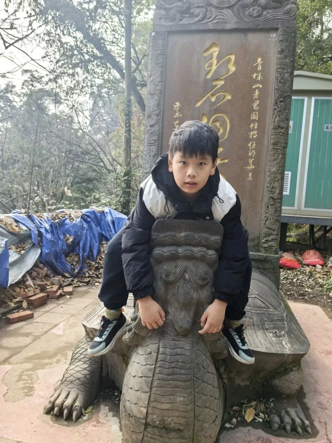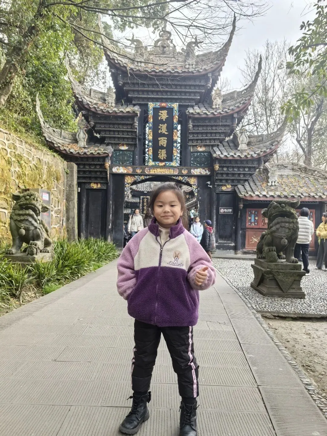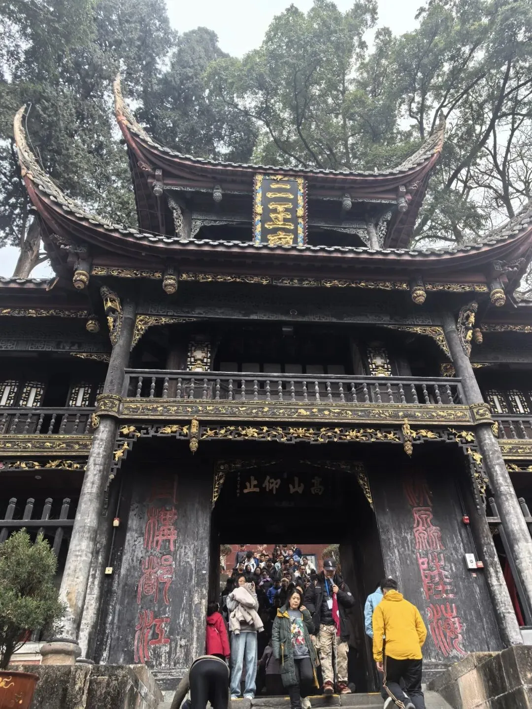 我带孩子旅游,更重视历史文化古迹,所以当然毫不犹疑的选择前山。爬山的方式,考虑到晚上要回成都,担心时间不够,我们选择缆车上山,徒步下山。但从心里上来说,我更倾向于徒步上下山,两个孩子经常跟我去徒步爬山,他们的体力和毅力完全没有问题,去年国庆我还带孩子爬了衡山。