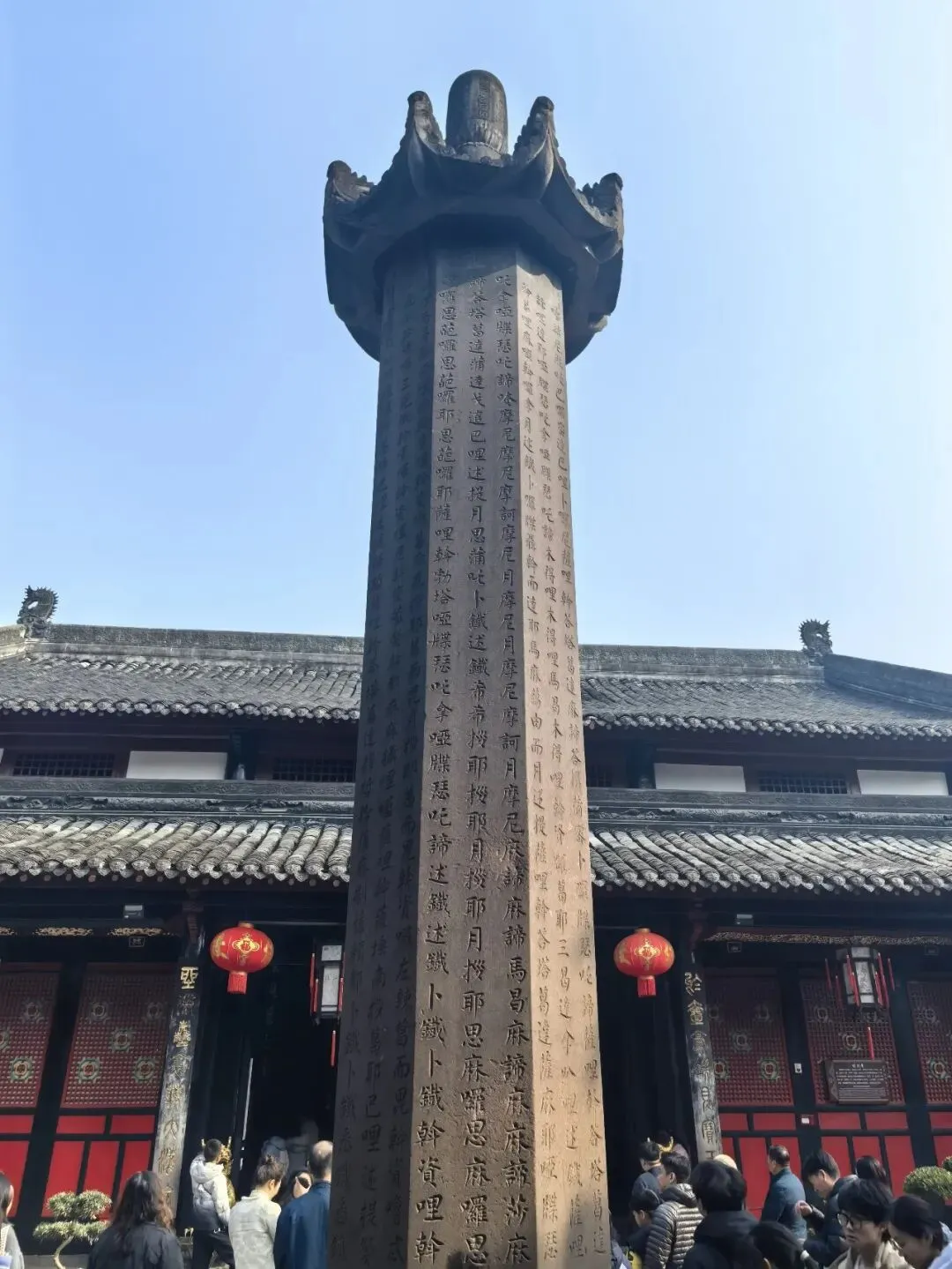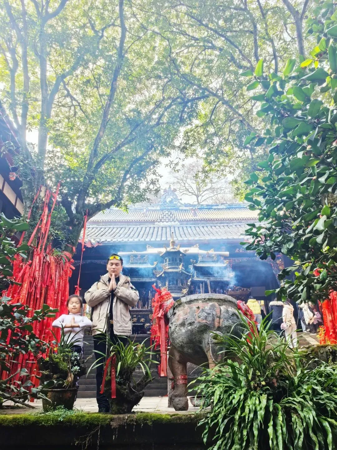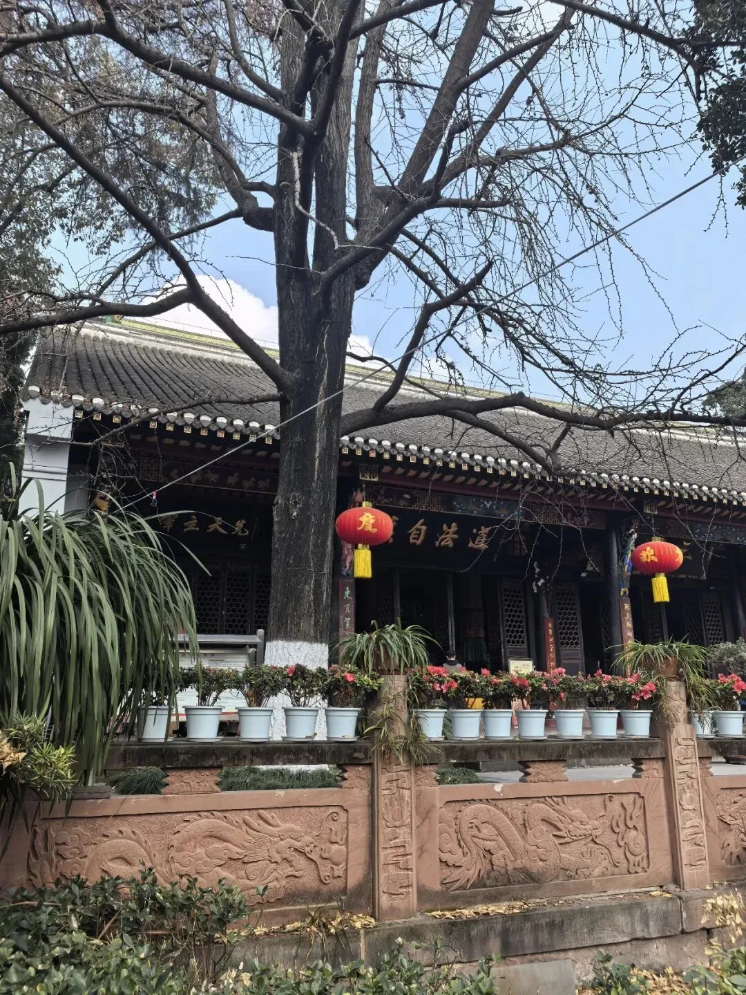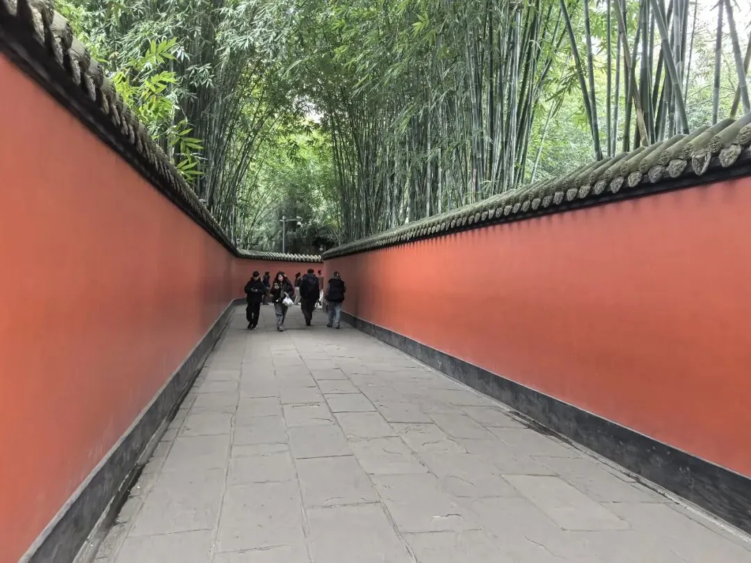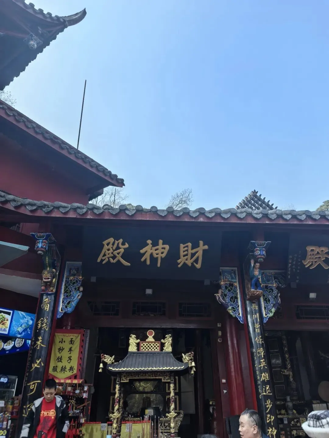 文殊院门口的红墙是网红打卡点,寺院香火旺盛,很多游客和信众都来此祈福。寺院旁边还有一座很高的塔,很多人在此转塔。文殊院门口还有很多特色小吃,价格不贵,味道不错,如果你去成都一定要尝尝。