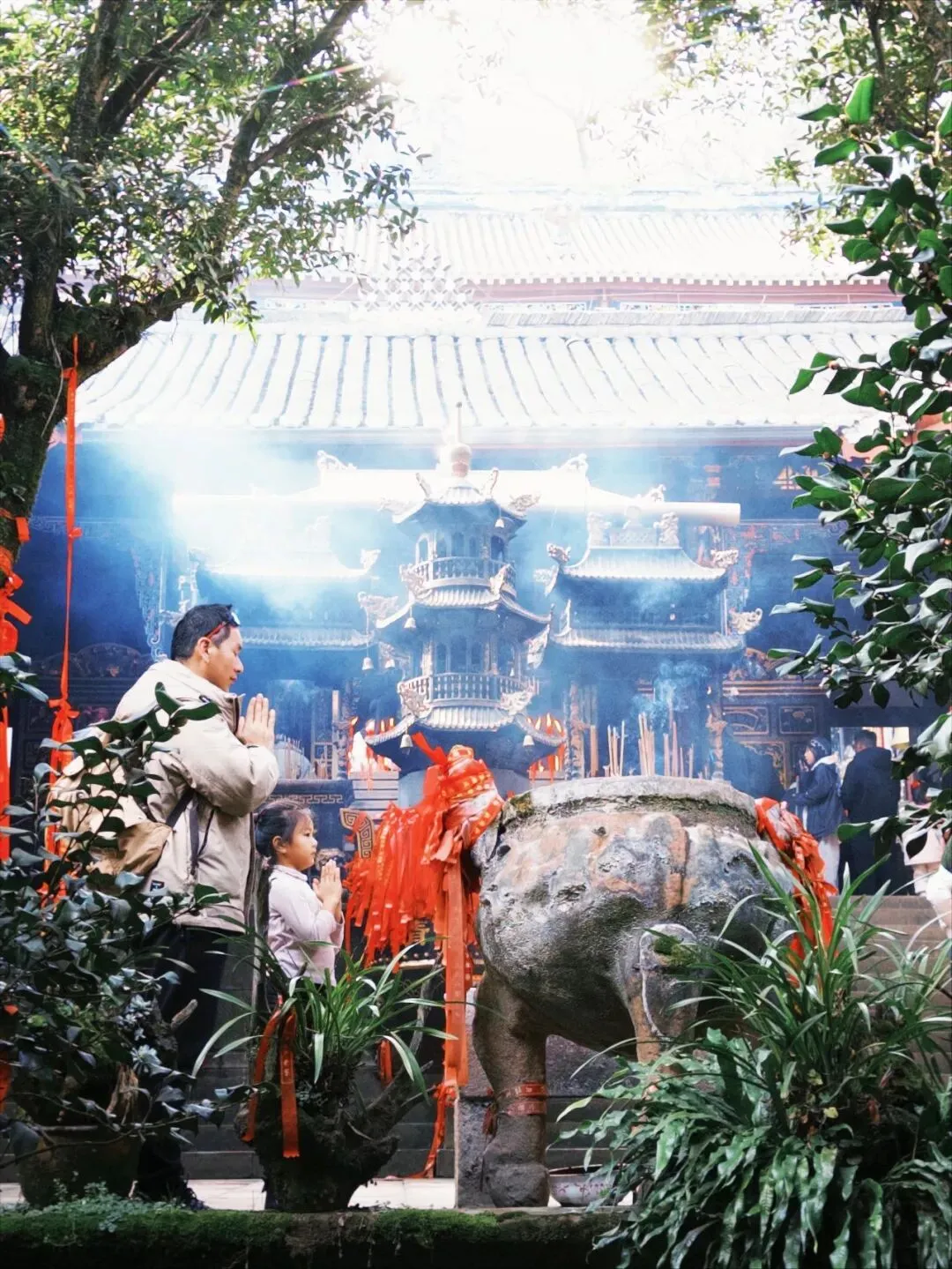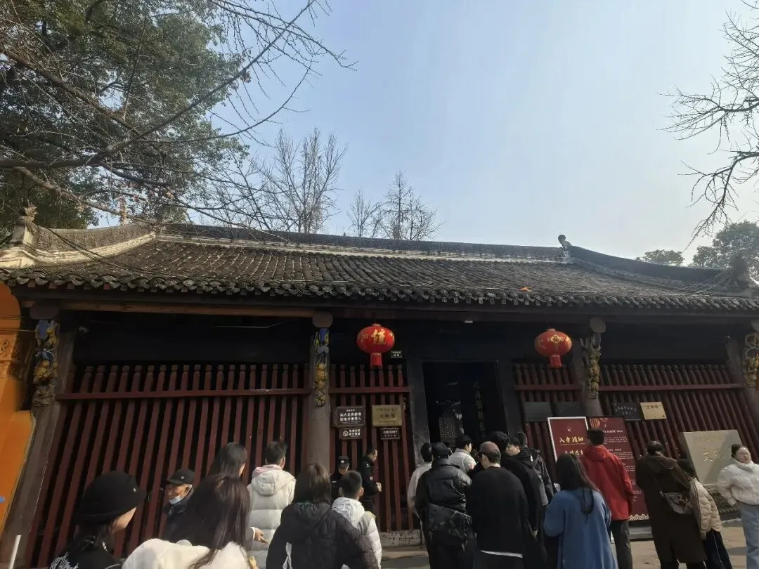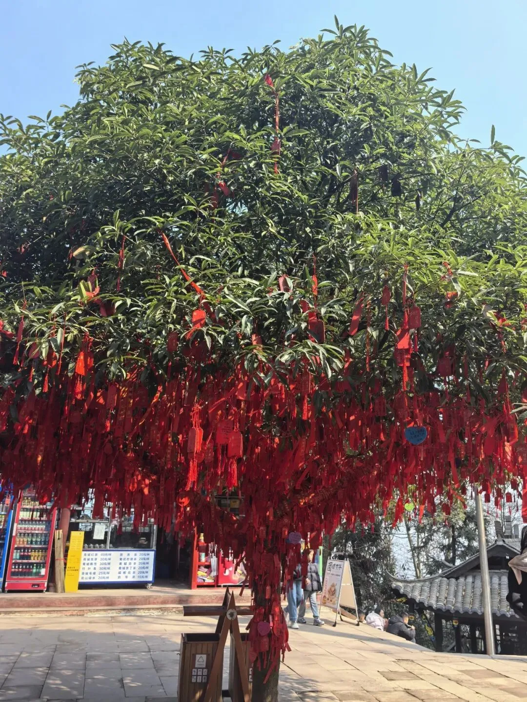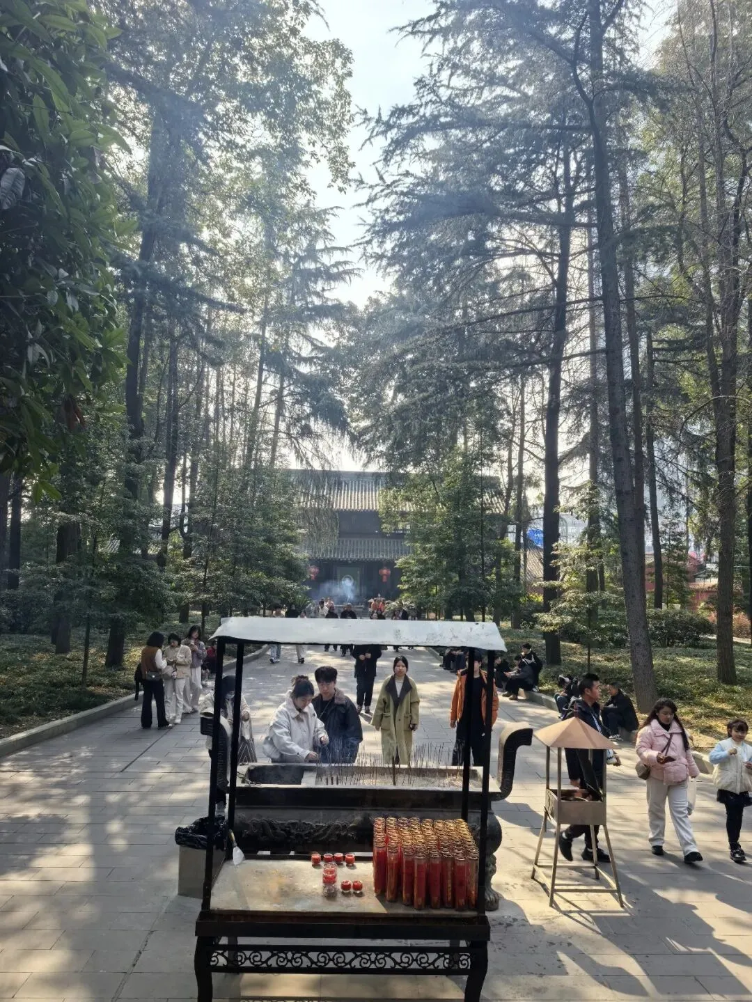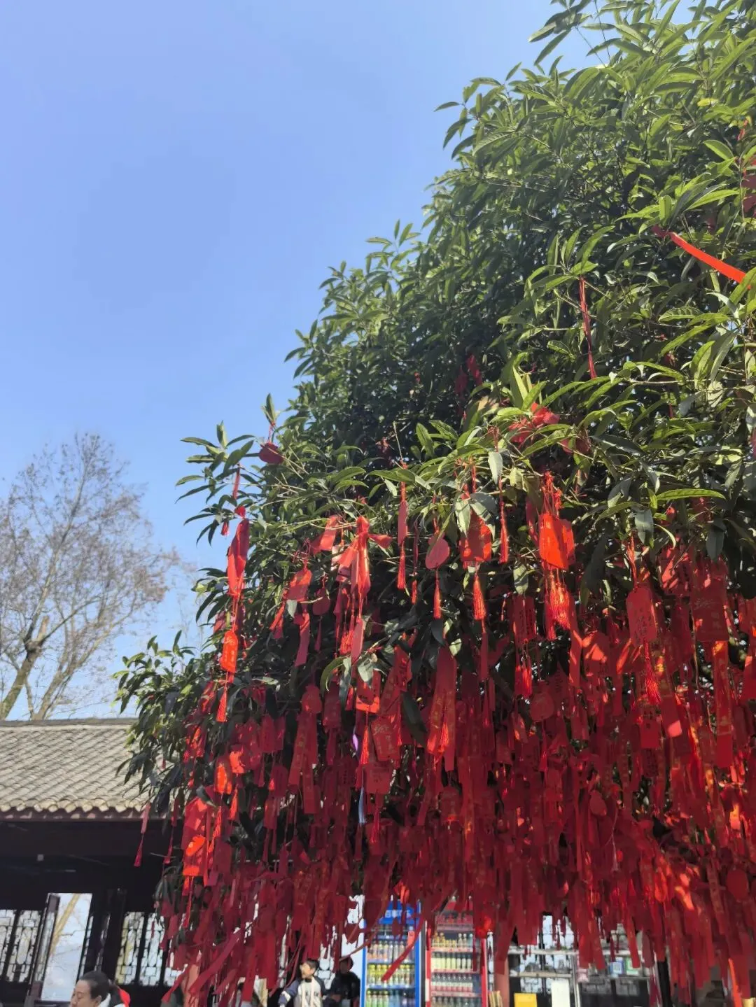 文殊院门口的红墙是网红打卡点,寺院香火旺盛,很多游客和信众都来此祈福。寺院旁边还有一座很高的塔,很多人在此转塔。文殊院门口还有很多特色小吃,价格不贵,味道不错,如果你去成都一定要尝尝。